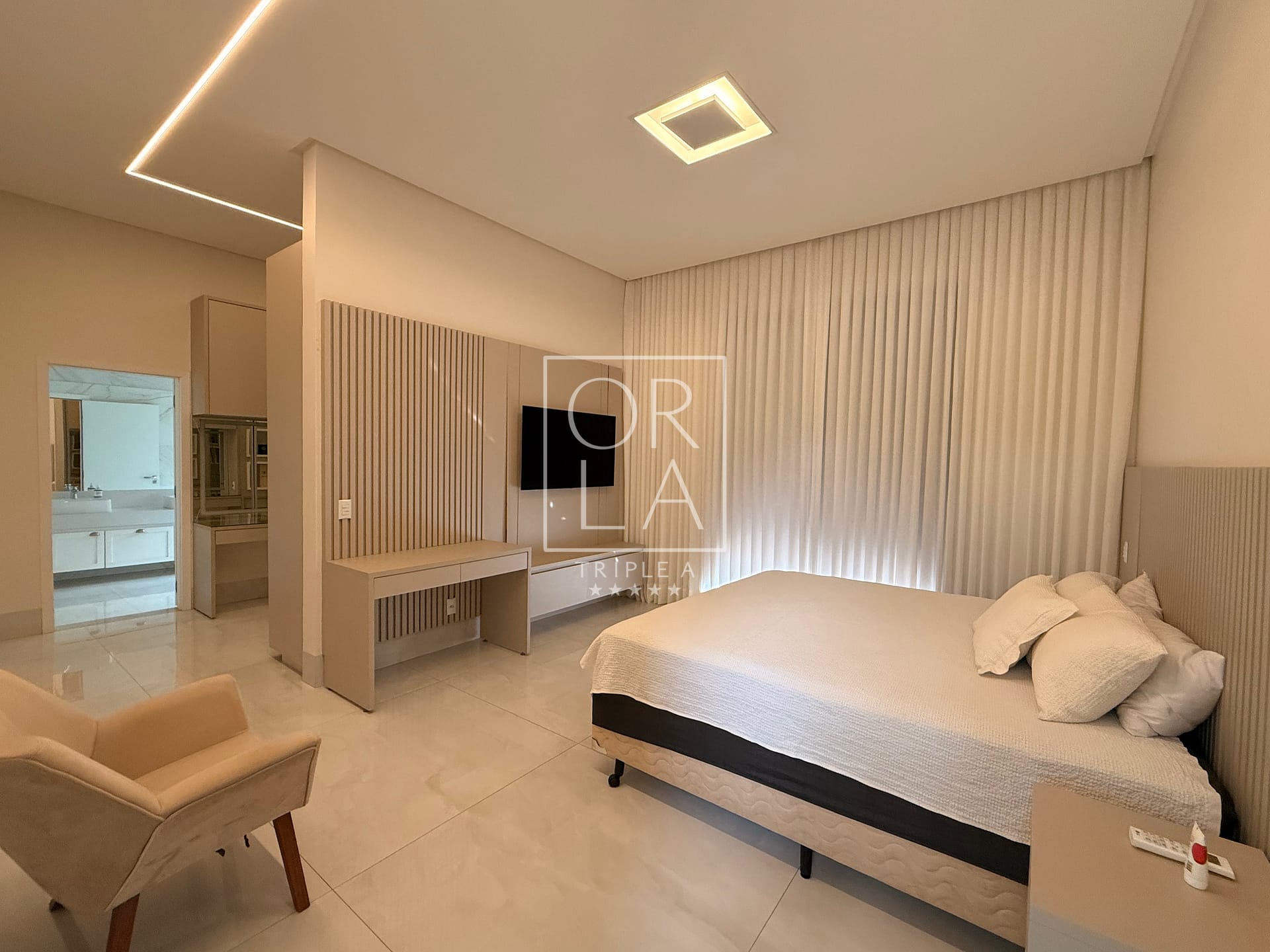 5 Suítes Amplas, 2 delas com Closets e a principal com saída para o jardim.