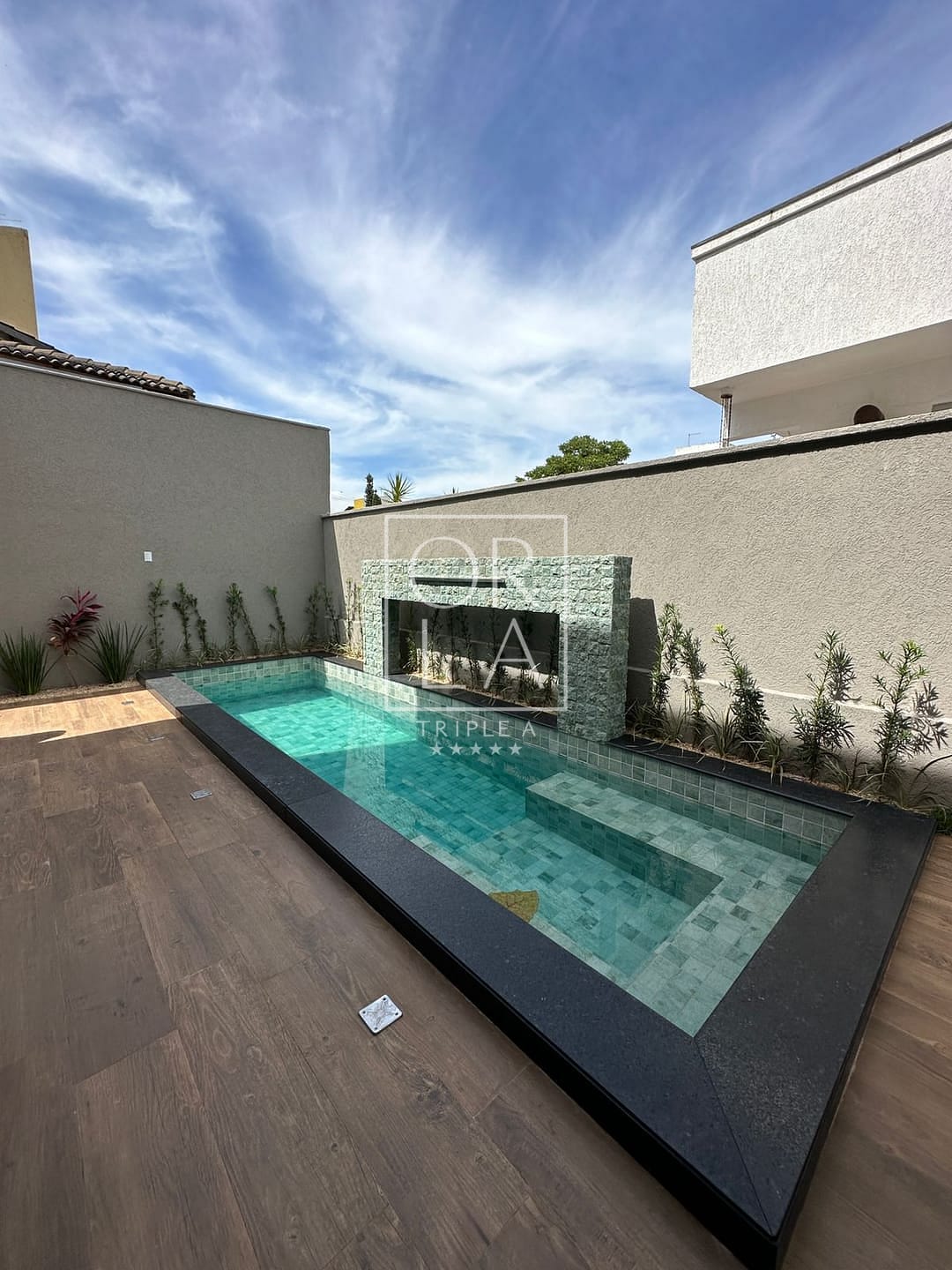 ▪︎ Revestimento de Pedra natural na fachada e pedra hijau na cascata