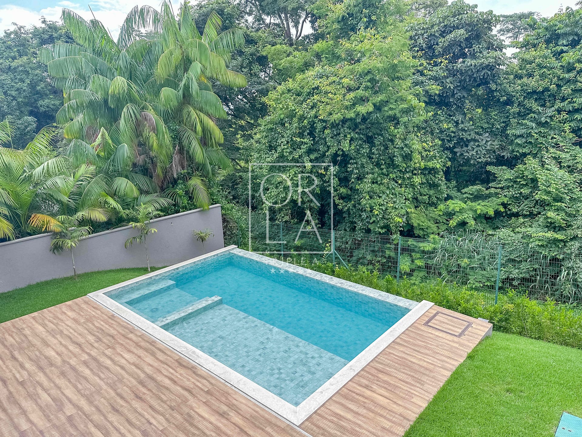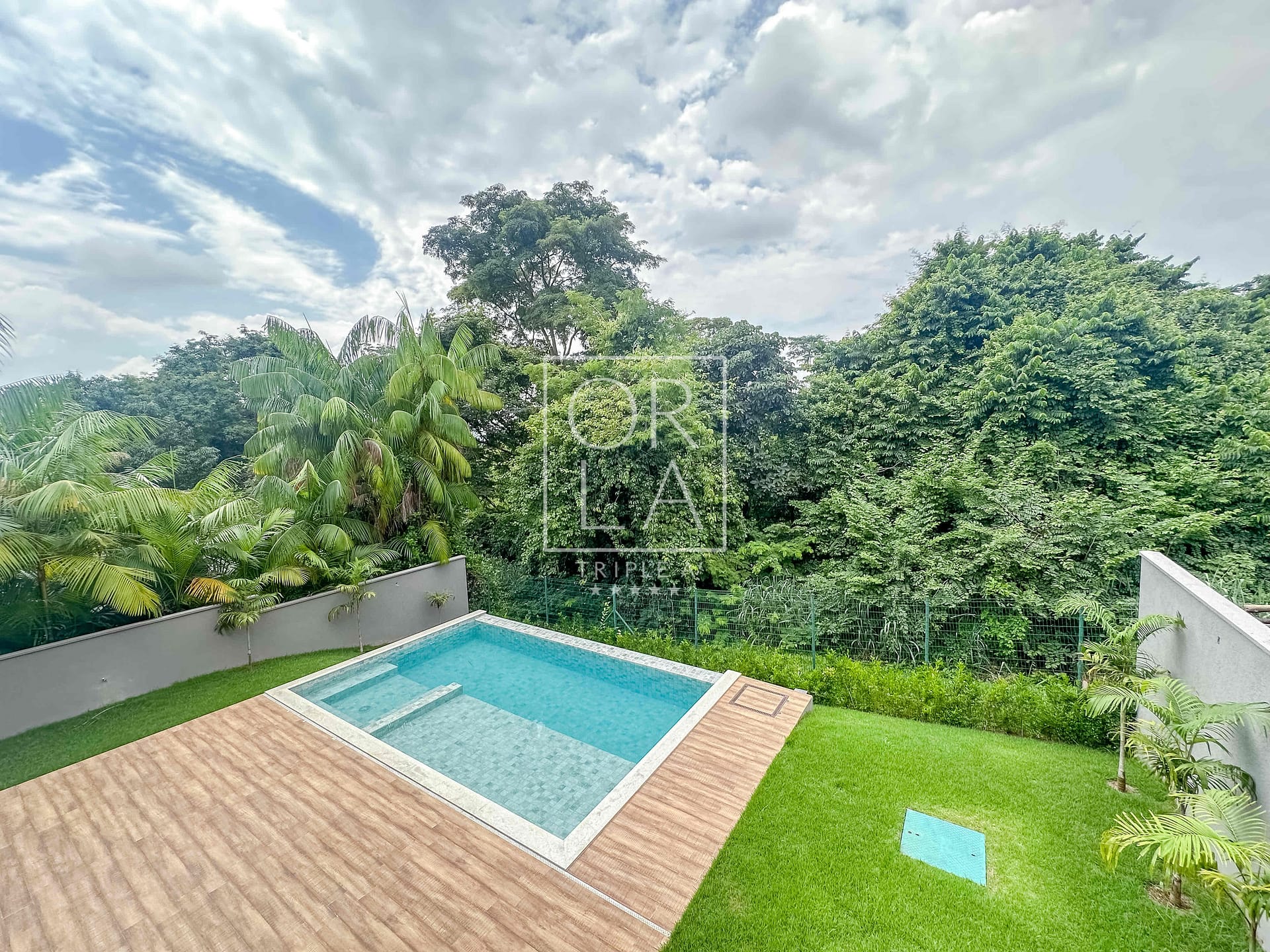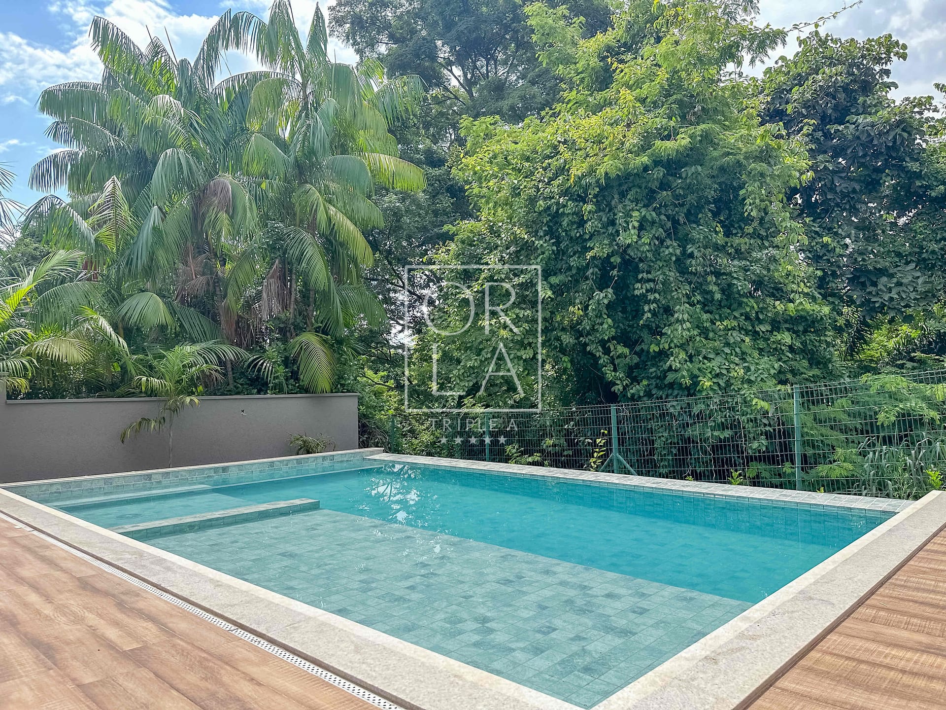 Excelente espaço de quintal, com uma piscina linda com borda infinita, de frente para a mata, com prainha, hidromassagem, aquecida e iluminada.