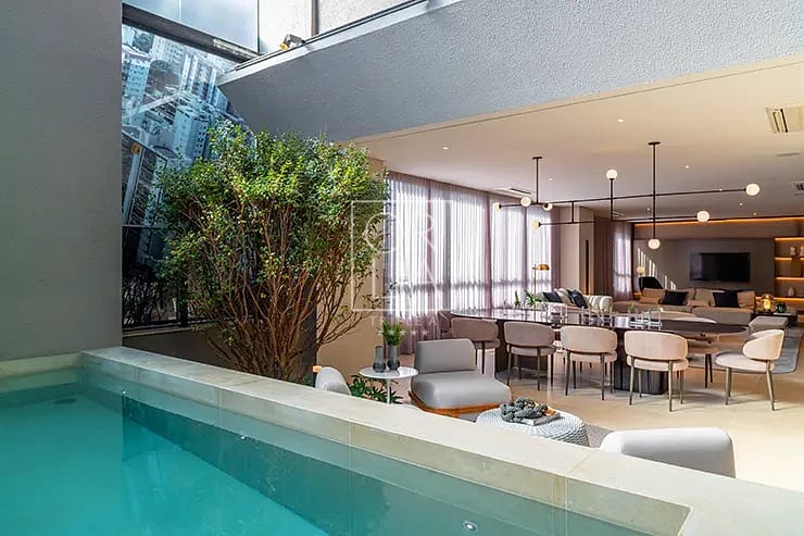 Com conceito de “mansão suspensa”, o imóvel oferece ampla metragem, com 5 suítes amplas, living integrado com múltiplos ambientes, terraços generosos e piscina privativa com vista definitiva para o parque, garantindo privacidade, sofisticação e um padrão elevado de moradia.