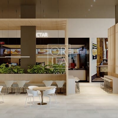 Ampla praça de alimentação para tornar a convivência mais atrativa.