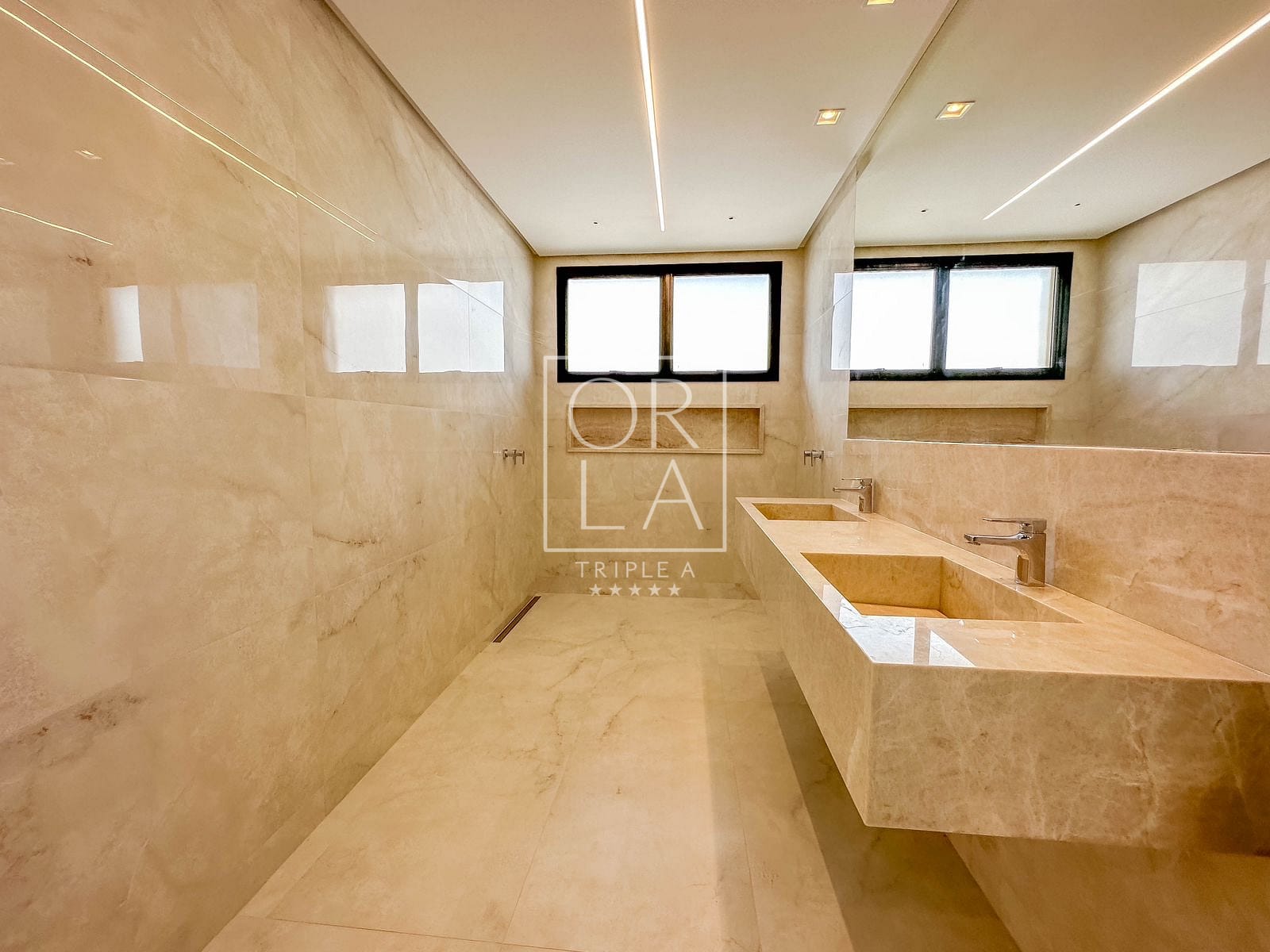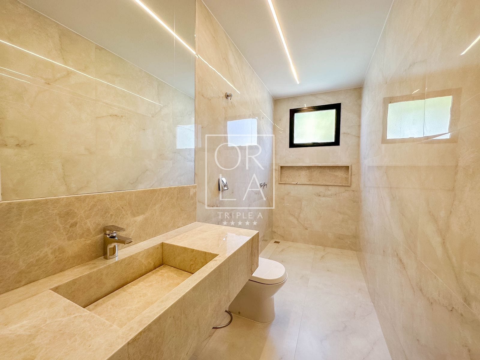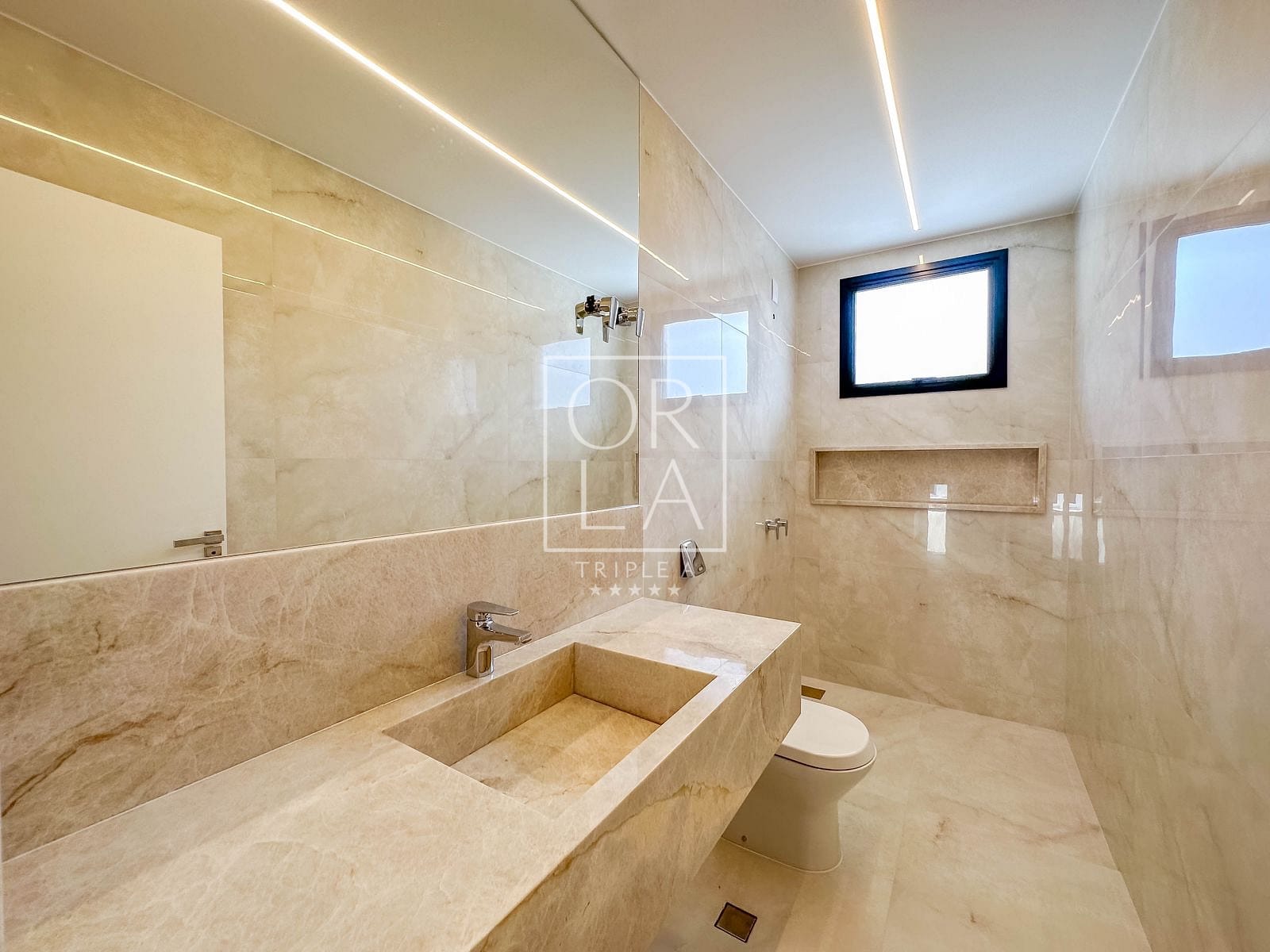 • Lavabo com revestimento em Mármore e Quartzo, adicionando um toque de luxo;