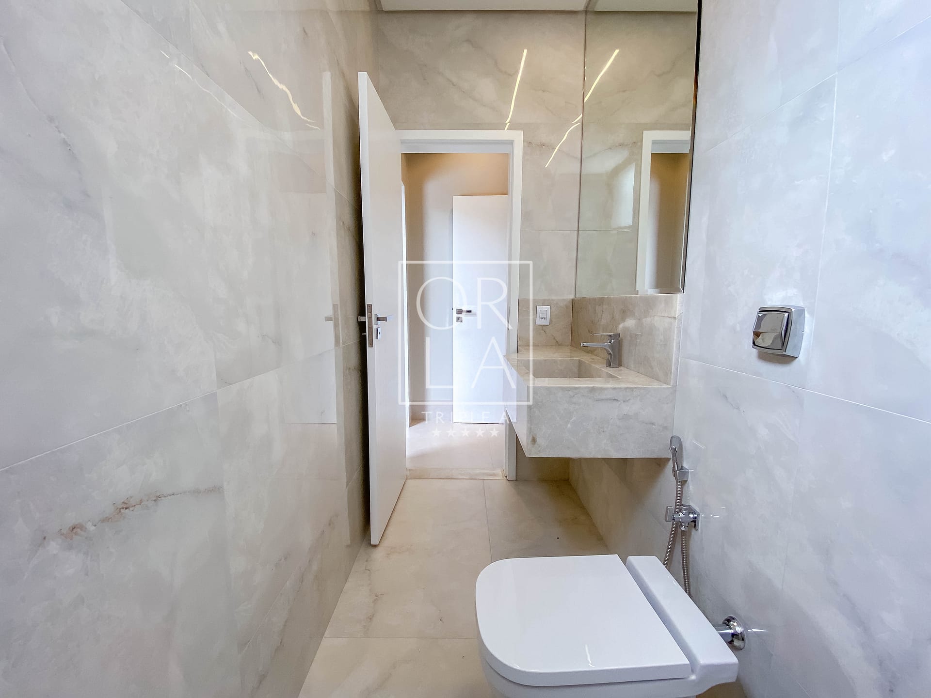 No piso inferior, conta com 1 suíte, 3 salas (sala de estar, jantar e sala de TV), cozinha ampla, integrada com a sala, belíssimo lavabo, Área gourmet espaçosa, área de serviço e DCE.