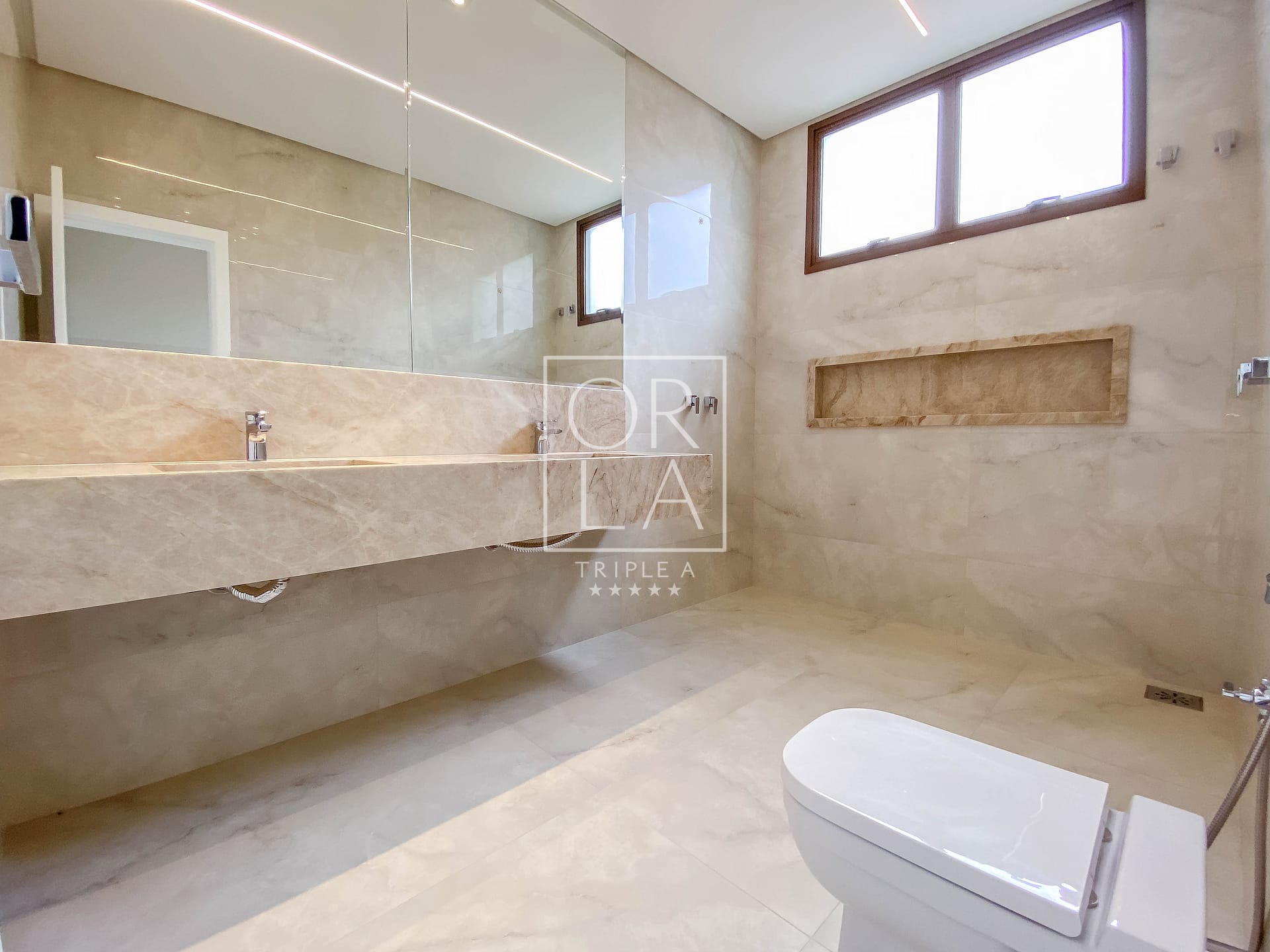 No piso superior, são 4 suítes amplas, sendo a suíte master com closet e sacada, além de uma generosa sala íntima.