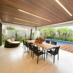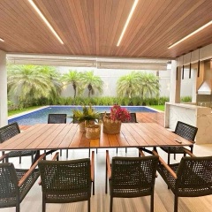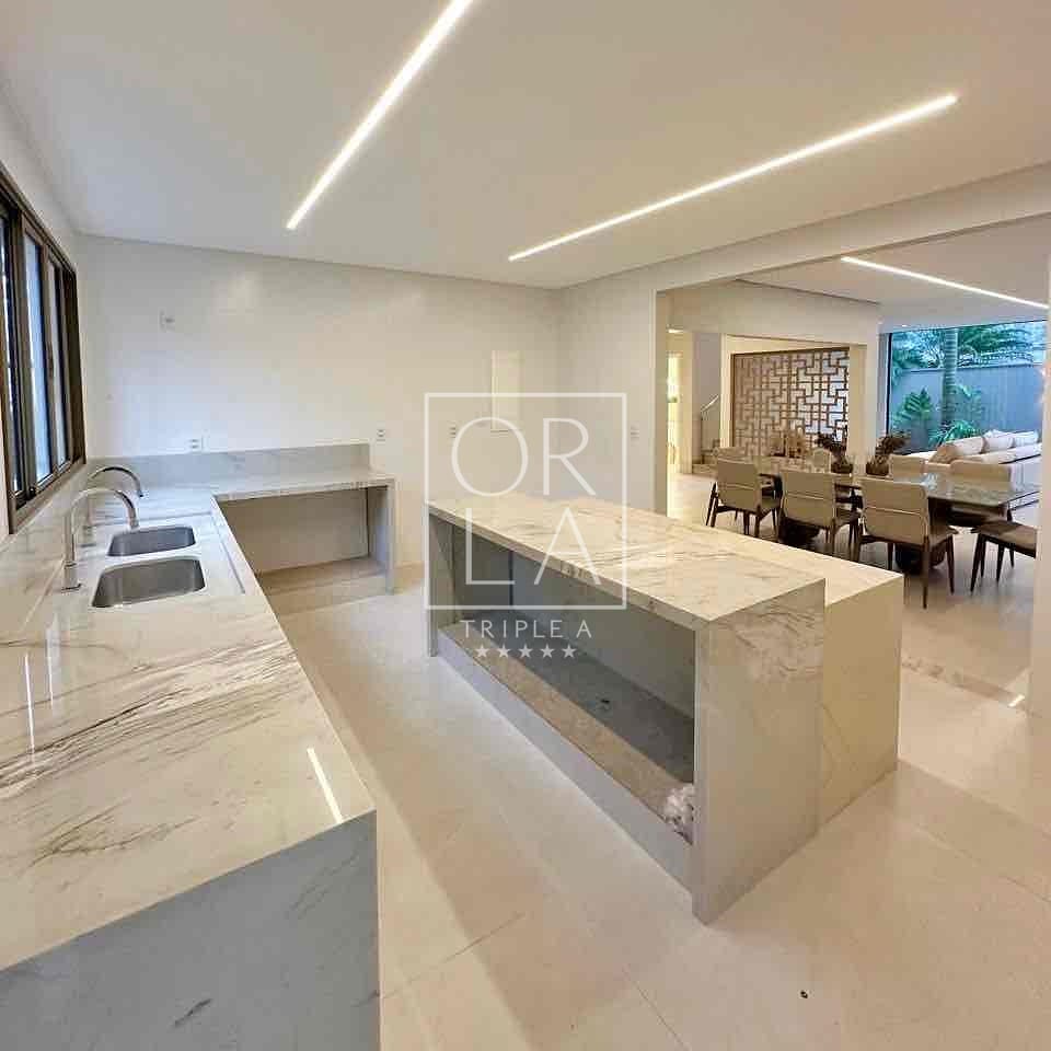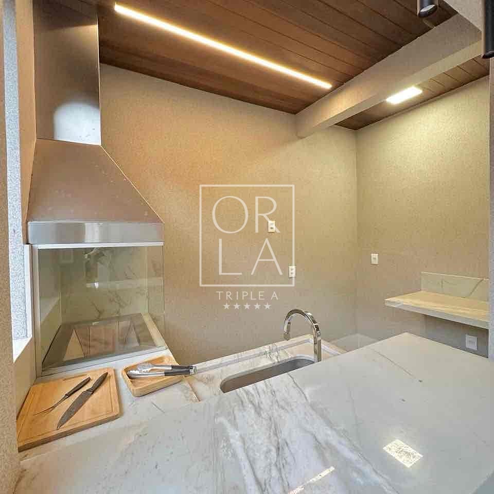 – Varanda gourmet equipada com churrasqueira em inox e bancadas em mármore.