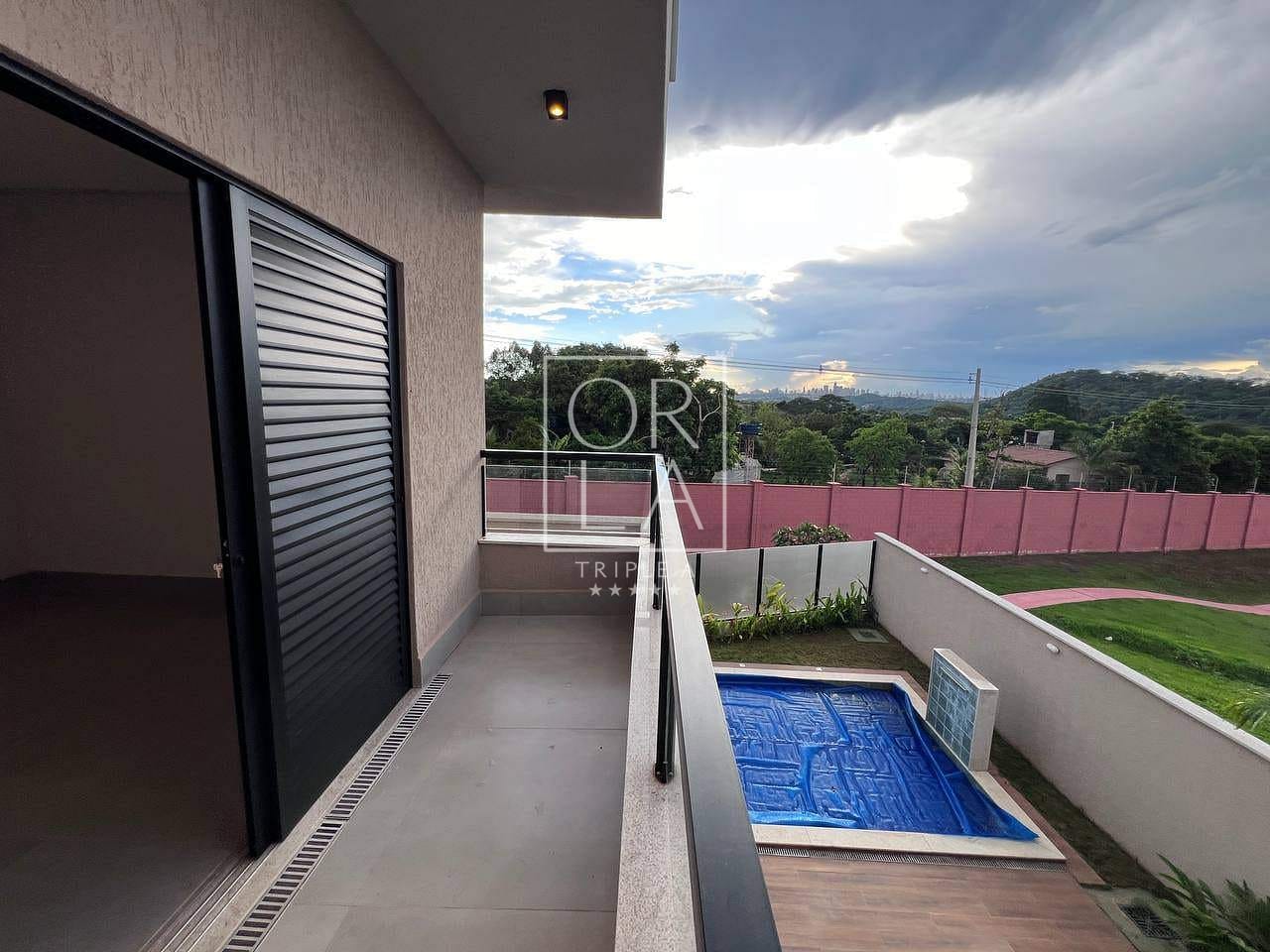 Sobrado de 3 quartos sendo 3 suítes plenas, todas com varanda, e uma com closet, Sala ampla com integração a cozinha completa em armários, Lavabo, Varanda Gourmet completa em armários, lavabo de apoio ao gourmet, piscina com hidromassagem, Churrasqueira, espaço coberto e uma vista incrível.