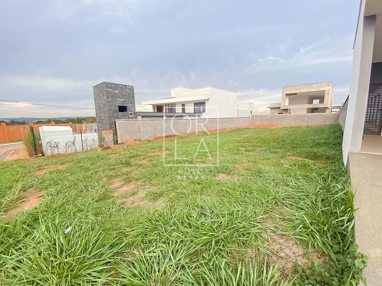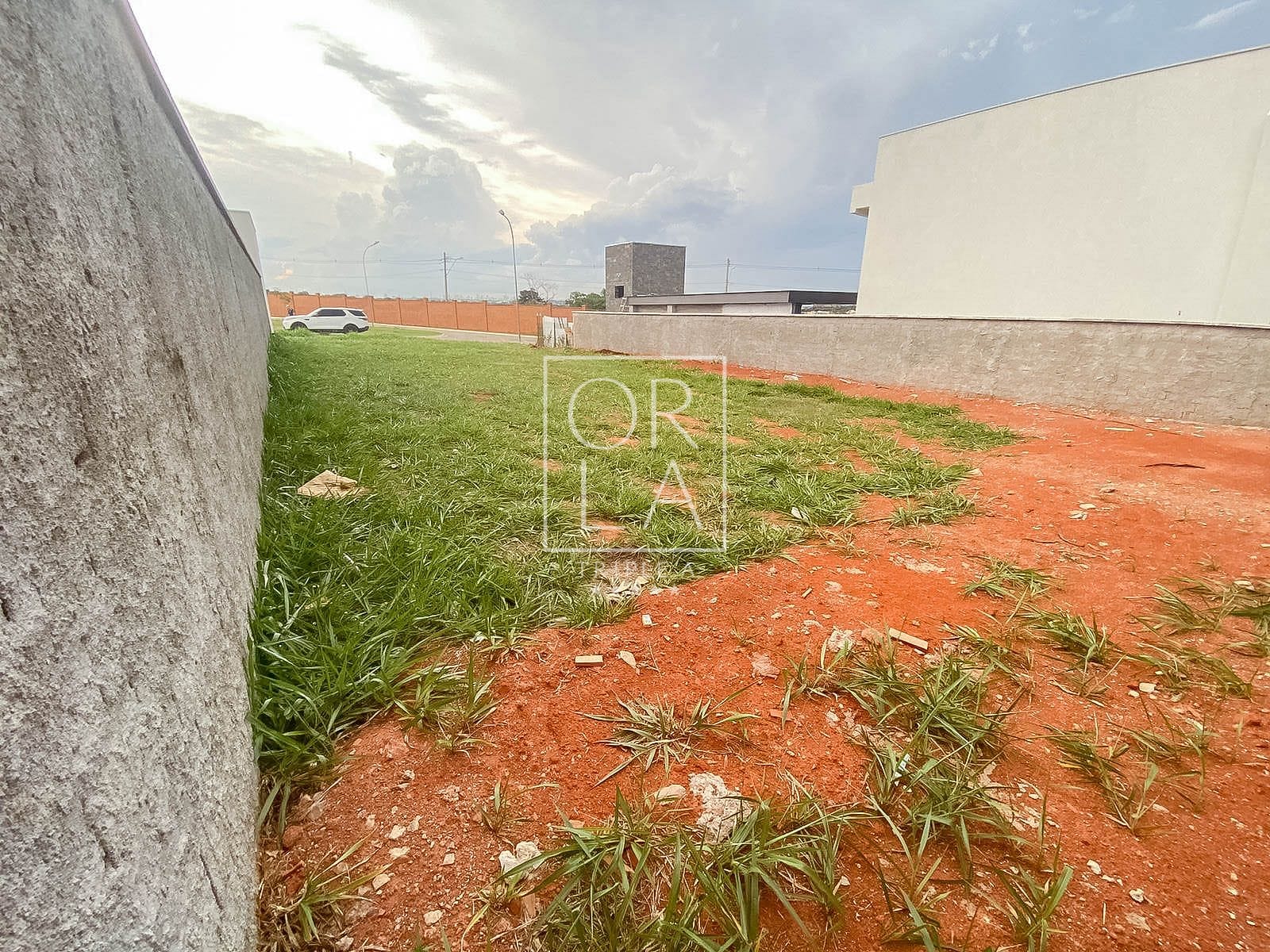 Lote relativamente próximo a uma das portarias, plano, com sol da manhã incidente nos fundos, na futura área de lazer, o que é uma característica muito positiva do lote e um diferencial, além de ter vizinhos já instalados.
