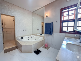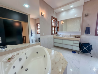 Pavimento Superior; Sala para tv, 03 suítes, sendo uma máster com closet e banheira de hidromassagem, armários, box em blindex e aquecimento solar nos banheiros. Pavimento térreo; Hall de entrada ...